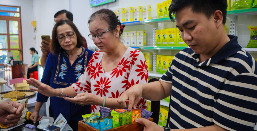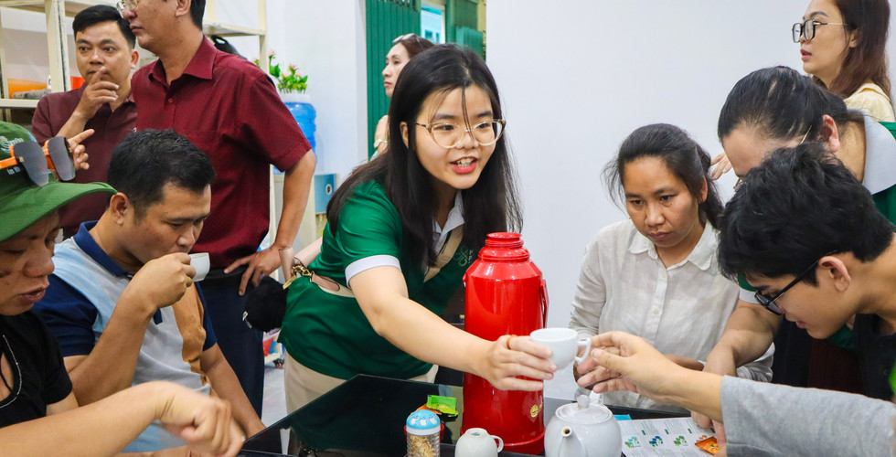Students from the university actively supported the activity by assisting participants as they explored and selected products, creating an interactive and engaging learning environment. The visit also included a rice tasting session featuring the ST25 variety, known as one of the best rice varieties in the region, as well as a tea tasting activity. These hands-on experiences allowed participants to directly assess product quality and better understand consumer preferences.